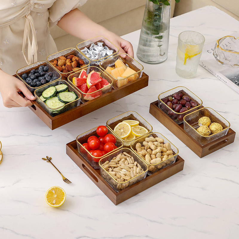 【分格金邊玻璃果盤】原木提手 + 金邊錘紋玻璃, 一盤搞定乾果、糖果、餅乾分類✨
