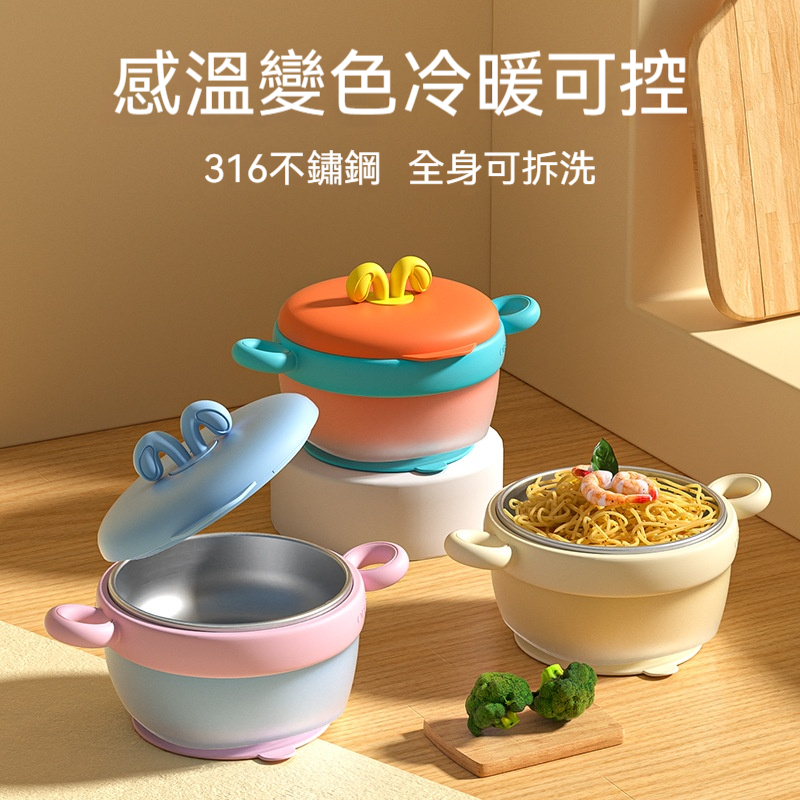 「感溫變色保溫碗」以 四層隔熱結構+智能變色提示 設計,316不鏽鋼、全身可拆洗,讓寶寶吃飯溫度剛剛好,媽媽清潔徹底零死角!✨