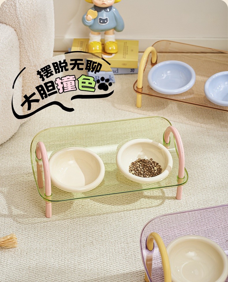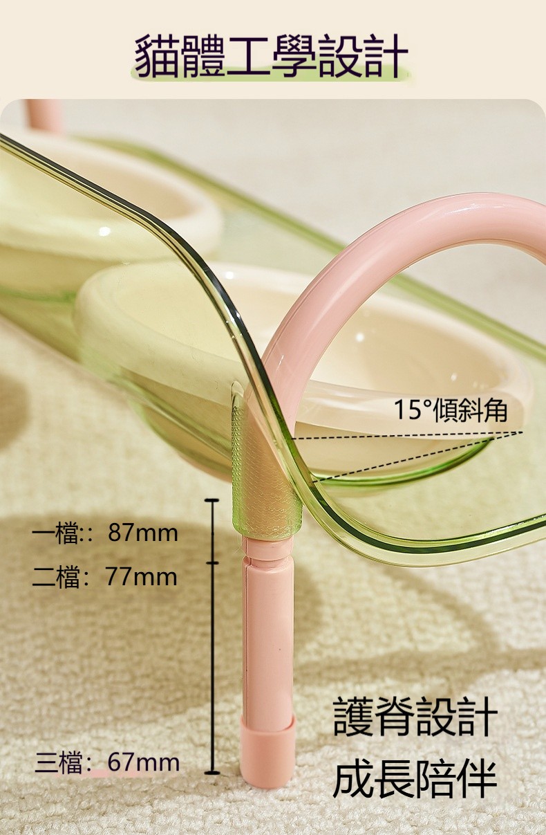 【寵物護頸雙碗架】三檔高度調節 ✅15°科學傾角✅貓體工學,守護頸椎健康,讓毛孩自然挺直進食✅雙碗分離✅弧形防濺,從此告別低頭吃飯壓力,守護頸椎與消化健康!✨