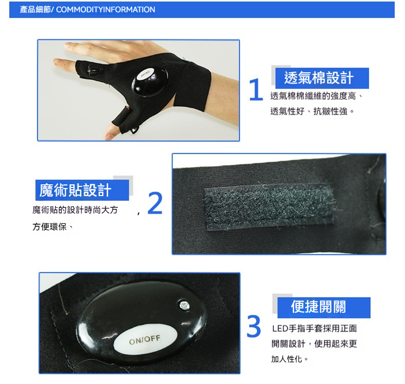 【LED手指燈手套】手指高亮燈珠|夜釣照明・戶外維修・夜間跑步|彈性透氣魔術貼,讓您的雙手在黑暗中也能靈活作業,光線隨手而至!✨