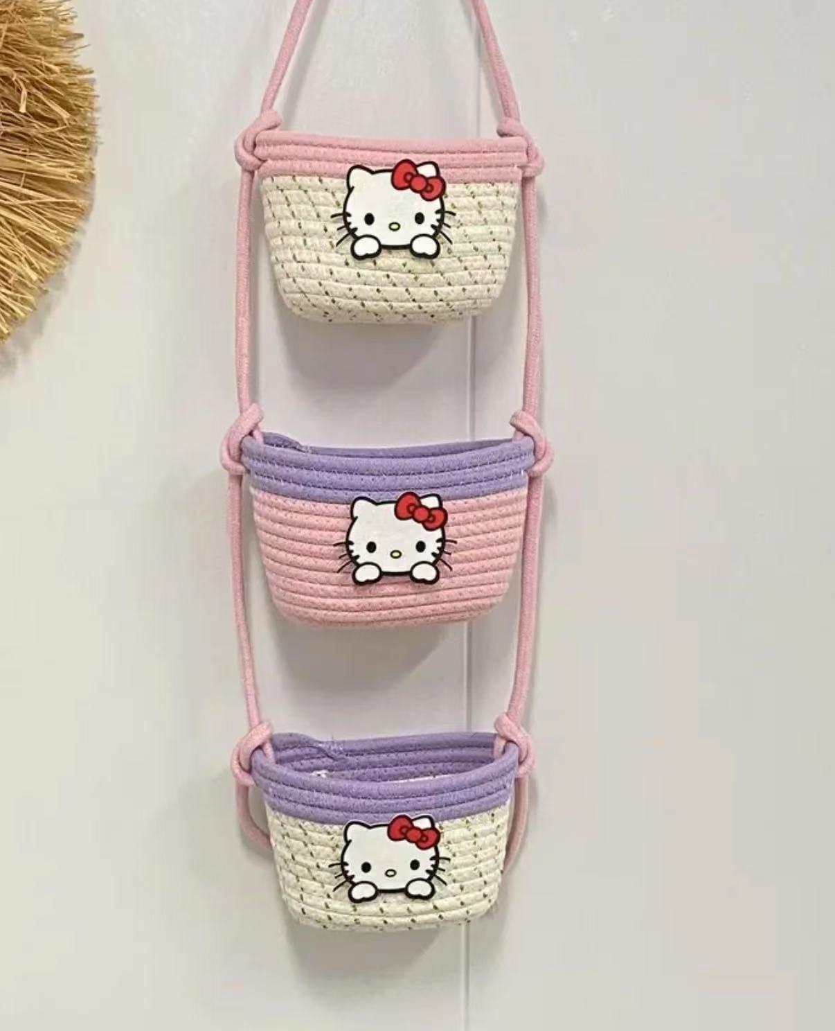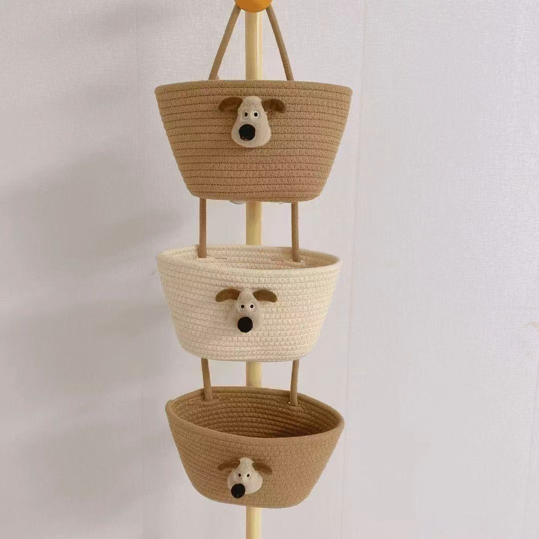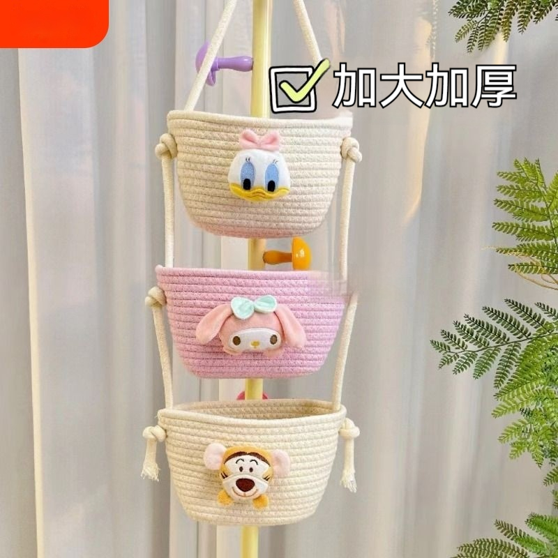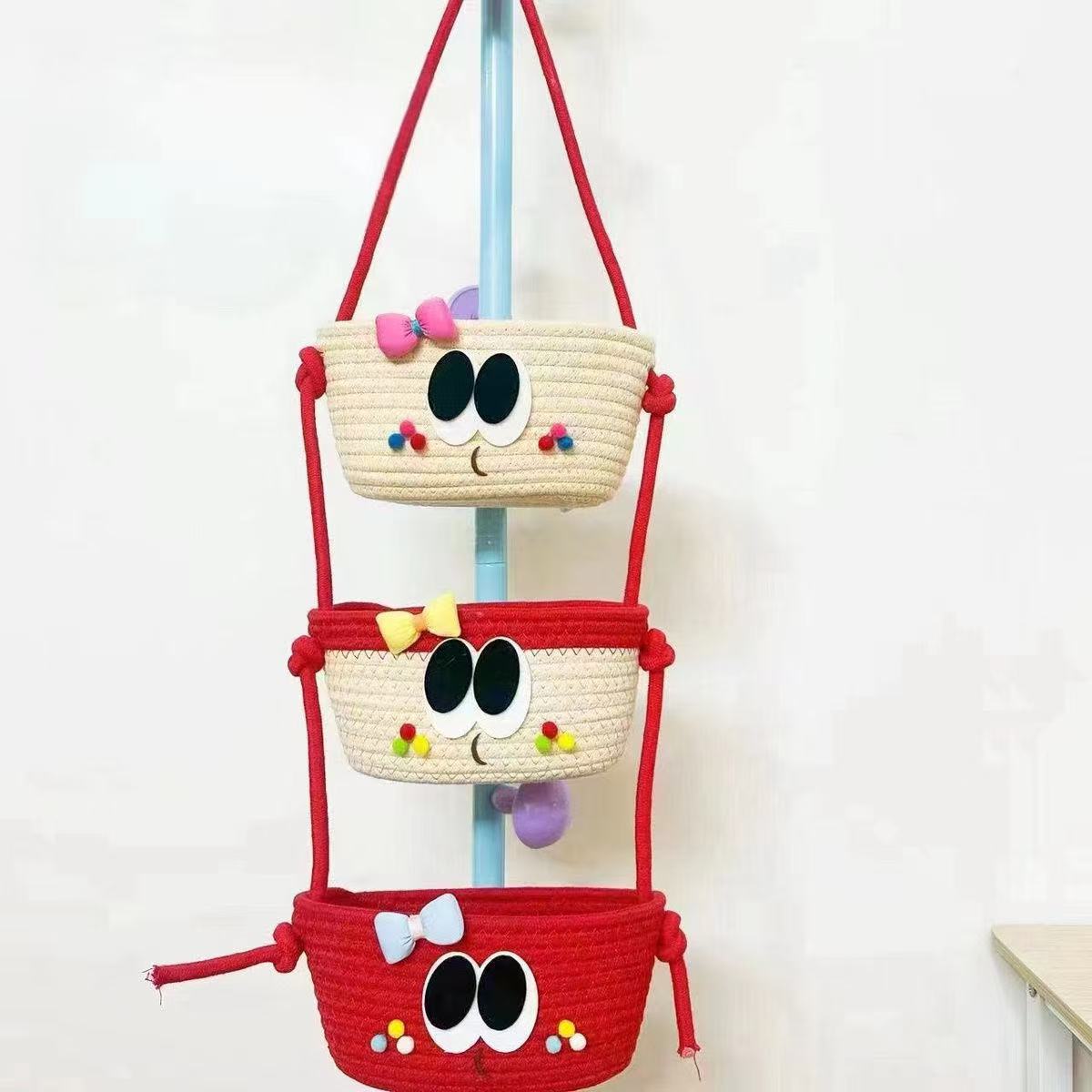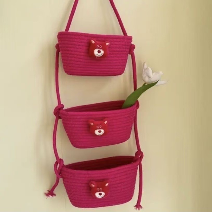 【卡通棉繩編織掛籃】 加厚棉繩+三層分格+萌趣角色 ✨可掛牆面、門後、書桌側, 從化妝品、文具到零食雜物,讓收納變成可愛的空間裝飾!✨