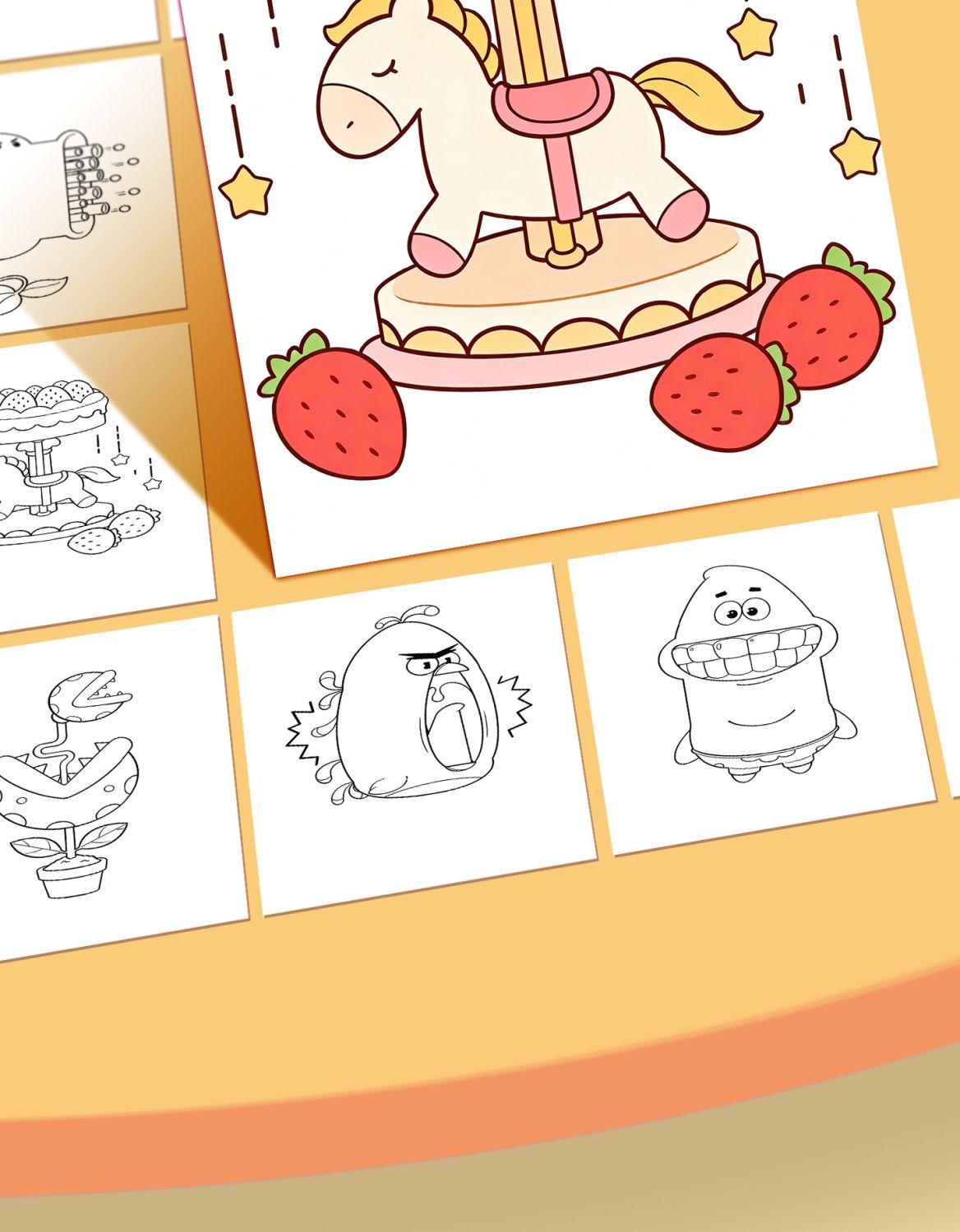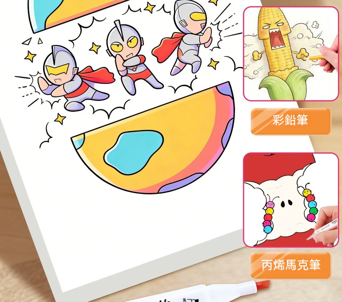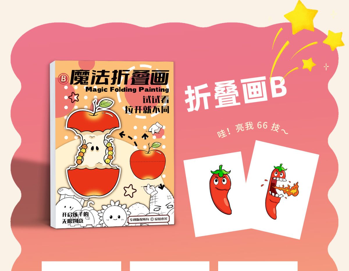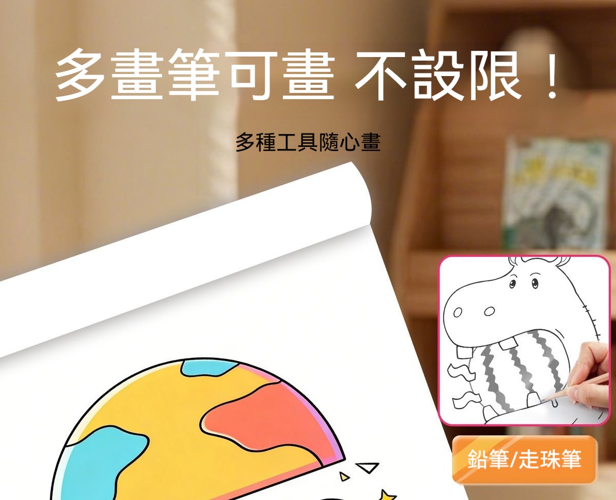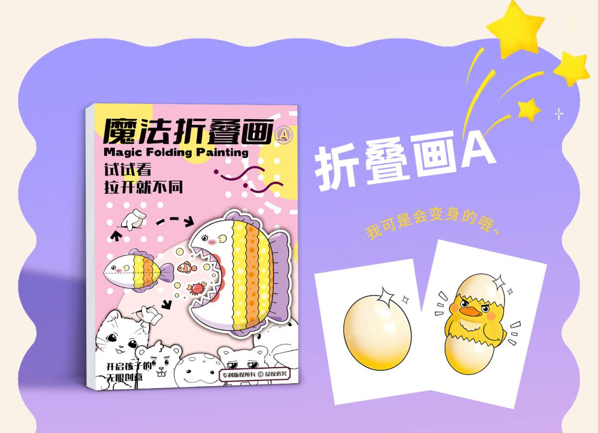 【魔法折疊繪畫本】以 隱藏式折頁設計+淺色描摹線,✨ 一拉展開驚喜畫面,讓創作變得超好玩!讓靜態塗鴉變成會「長大」、「變身」的動態故事,激發無窮想像力!✨