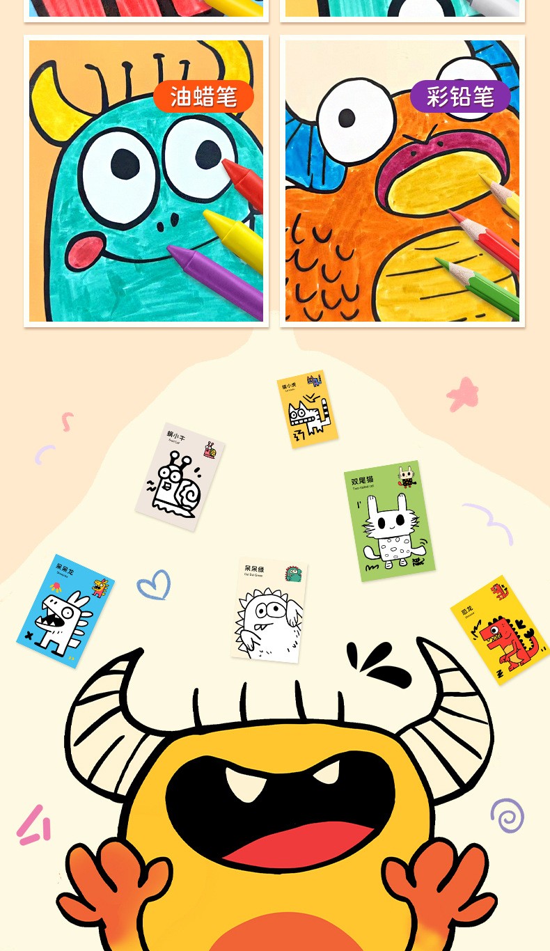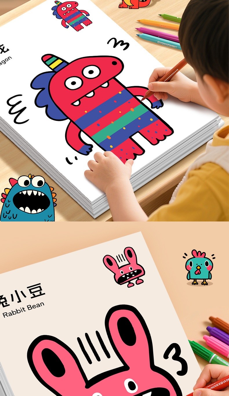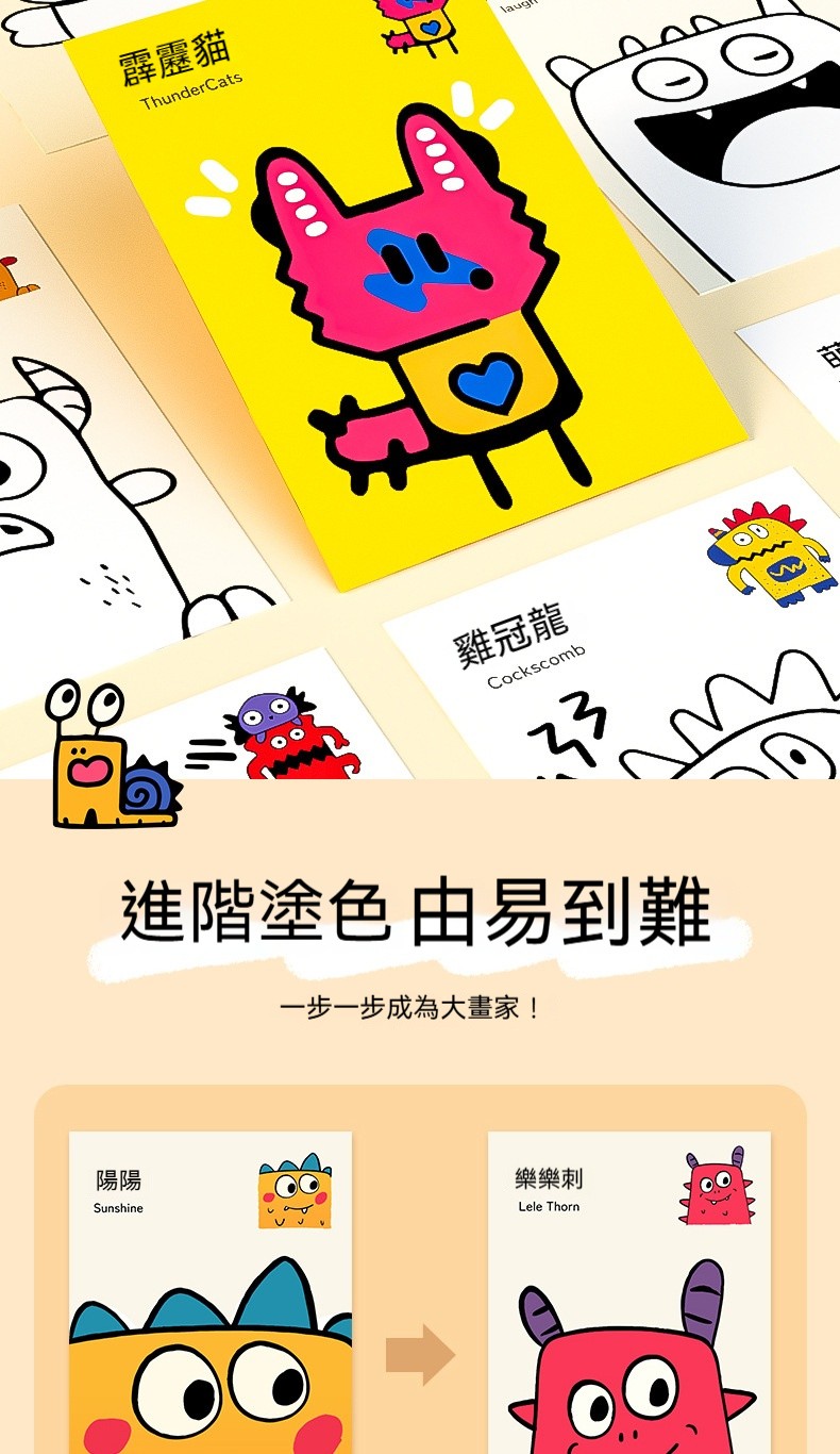 【奇异萌寵兒童塗色書】 啟蒙藝術・安全無毒・進階設計|讓孩子自由塗抹,在色彩中激發創造力與快樂!✨