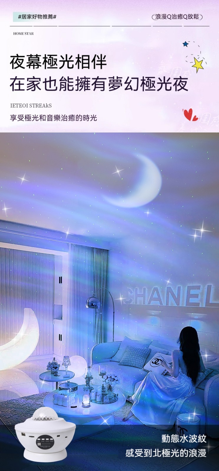 【滿天星星空藍牙投影燈】旋轉星空投影✨藍牙音樂播放✨亮度可調✨倒計時關機✨USB供電,在天花板變出流動星空~✨