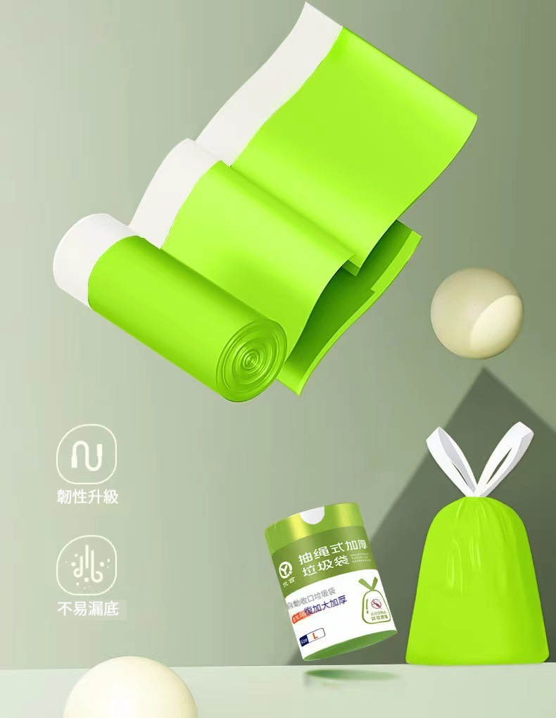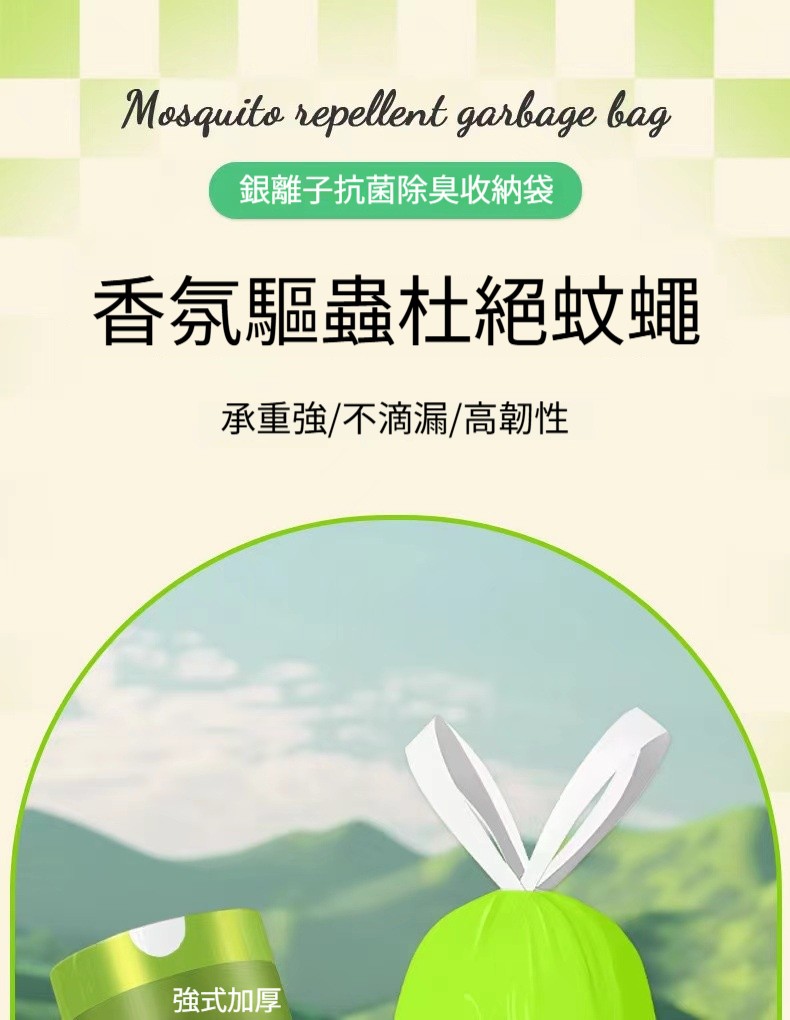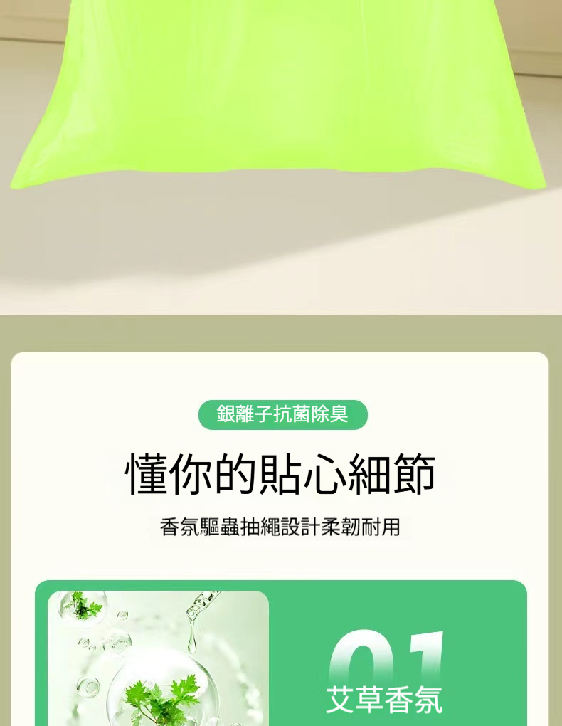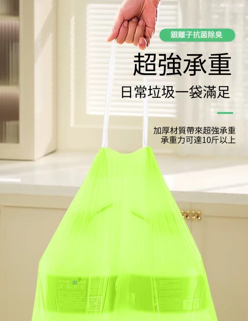 【艾草銀離子抗菌垃圾袋】抽繩自動收口✅抗菌除臭✅驅蟲防漏✅加厚10斤承重・廚房衛浴專用✨(免撕抽取・香氛升級)